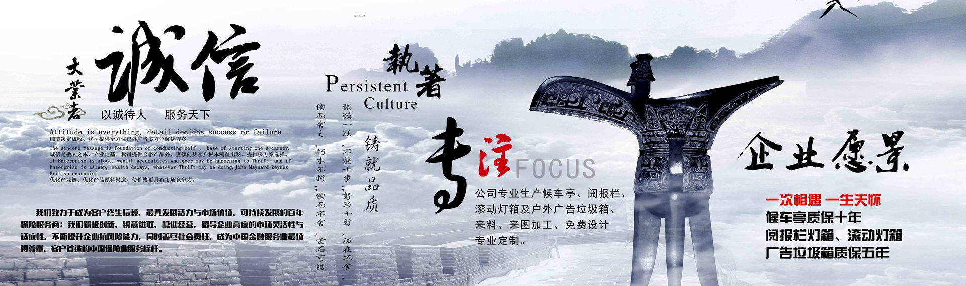 我公司生產(chǎn)候車(chē)亭、公交站臺(tái)、宣傳欄、標(biāo)識(shí)標(biāo)牌均為定制化產(chǎn)品,所有材質(zhì),款式,顏色,尺寸等都不是固定的,我們是生產(chǎn)廠家,我們有專(zhuān)業(yè)設(shè)計(jì)師,技術(shù)員,可以根據(jù)你的要求量身定制,我司承諾為你提供優(yōu)質(zhì)的選款、設(shè)計(jì)、生產(chǎn)、物流服務(wù)。